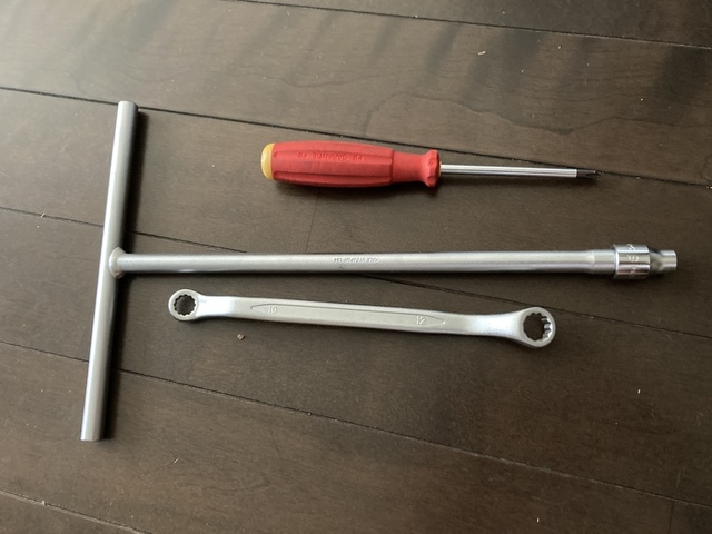 スパナが入りにくいのでソケットレンチを使いたかったが短すぎた。