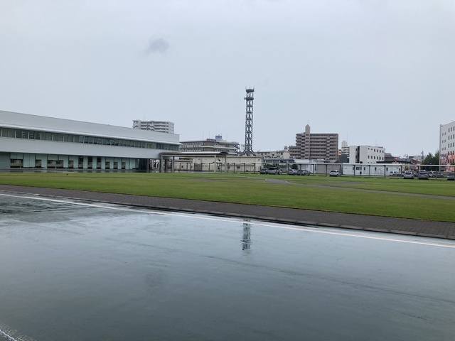 なんだろうこのスペース。運動するには芝生の敷地形状が変。 ヘリポートなのか。