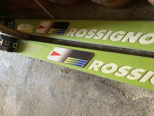 ロシニョールのやつね。大回転用の紫のやつも持っていた。そちらのほうがお気に入りだったな。 名前を調べようかと思ったけど古すぎてわからない。