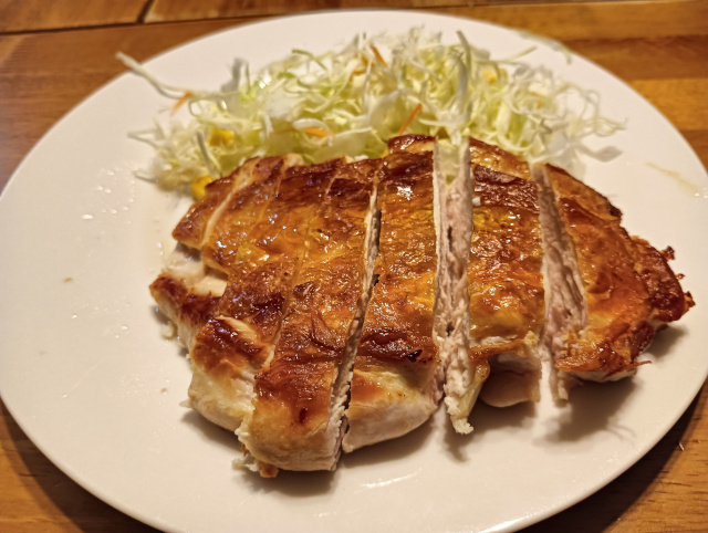 うん、うまい。見た目も美味しそうだし。 ただ胸肉の味が変わるわけではなく、ジューシーになってパサパサ感が抜けるってとこか。