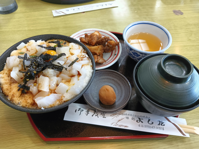 帰りに近くの食堂で昼食を取ることにした。 ドライブインよしだのイカ丼だ。